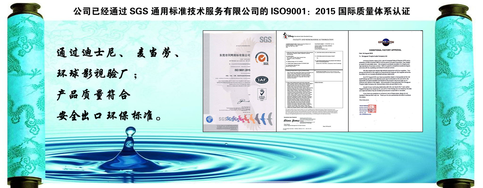 東莞市同輝商標輔料及包裝印刷有限公司是一家專業(yè)從事商標制造、包裝印刷的企業(yè),主營生產(chǎn)和銷售:各類織嘜商標,織章,印刷商標,印嘜,標簽印刷,不干膠商標,絲印商標,熱轉(zhuǎn)印標,無感商標,燙嘜,皮牌商標,電壓商標、商標帶、繡花標,布貼標、皮貼標、商標吊牌,彩卡,折盒等廣泛用于各行各業(yè)。工廠經(jīng)過多年的發(fā)展與開拓,規(guī)模日益發(fā)展壯大。從設計制作、工程研發(fā)、生產(chǎn)制造、產(chǎn)后加工、品檢、物流配送、售后服務等一套完整的優(yōu)質(zhì)服務體系,及優(yōu)秀的經(jīng)營管理團隊。已通過SGS ISO9001:2008(新版是2015版)國際質(zhì)量體系認證,產(chǎn)品質(zhì)量符合各國安全出口環(huán)保標準。承蒙國內(nèi)外客戶的大力支持,目前已有許多國際著名品牌定點授權(quán)我公司生產(chǎn),并是通過全球迪士尼FAMA認證驗廠,麥當勞驗廠,環(huán)球影視驗廠的供應商,是各行業(yè)值得信賴并具有實力的合作伙伴。